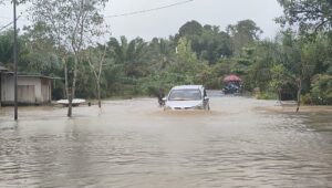 Tanah Bumbu – Jalan penghubung antar desa di Kecamatan Kusan Hulu, Kabupaten Tanah Bumbu tepatnya di Desa Pacakan terendam akibat luapan air Sungai Kusan, Kamis (6/6/2024).