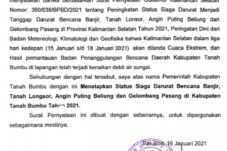 Bupati Tanbu Tetapkan Status Siaga Darurat Bencana
