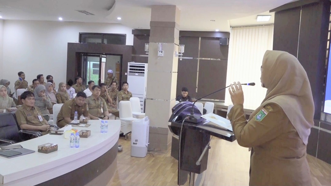 Asisten Administrasi Umum Setkab Tanah Bumbu Narni membacakan sambutan Bupati dr HM Zairullah Azhar menyampaikan apresiasi pelaksanaan bimtek penyusunan master plan smart city dan quick win program unggulan tahap 1 di Kabupaten Tanah Bumbu.