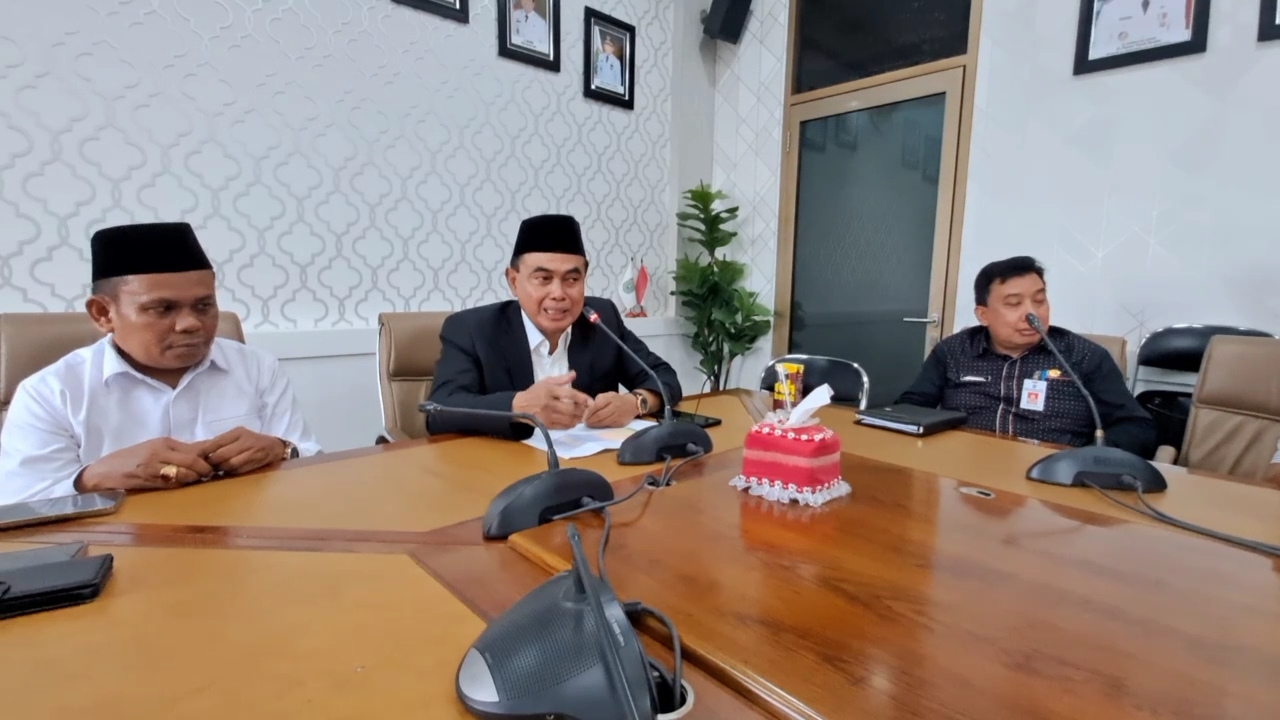 Bupati dr Zairullah Azhar saat menyanyikan press release di kantornya, Selasa (7/2/2023).