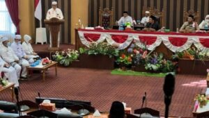 Turut berhadir dalam paripurna virtual tersebut, perwakilan Forum Komunikasi Pimpinan Daerah, lembaga dan instansi vertikal, para asisten dan staf ahli, pejabat SKPD dan tamu undangan lainnya. [ril]