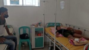 Seorang warga RT 10 Kampung Tajur, Desa Sungai Dua M Agus, kini sudah beberapa hari di Puskesmas setelah anaknya sudah sekitar satu minggu yang awalnya mengalami panas dingin, meriang.
