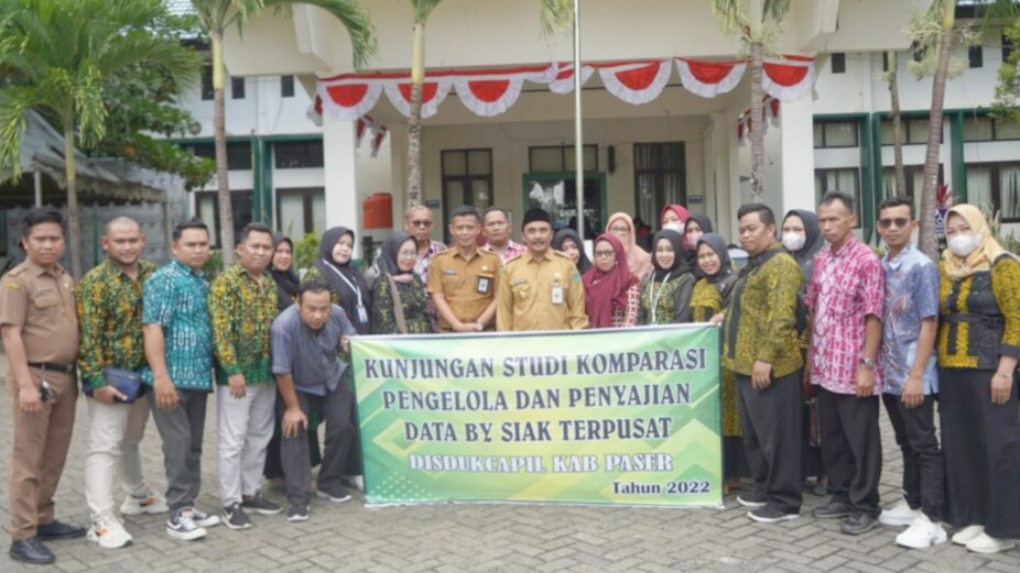 DINAS Kependudukan dan Pencatatan Sipil (Disdukcapil) Kabupaten Paser, Kalimantan Timur berkunjung ke Disdukcapil Tanah Bumbu, Selasa (20/12/22).