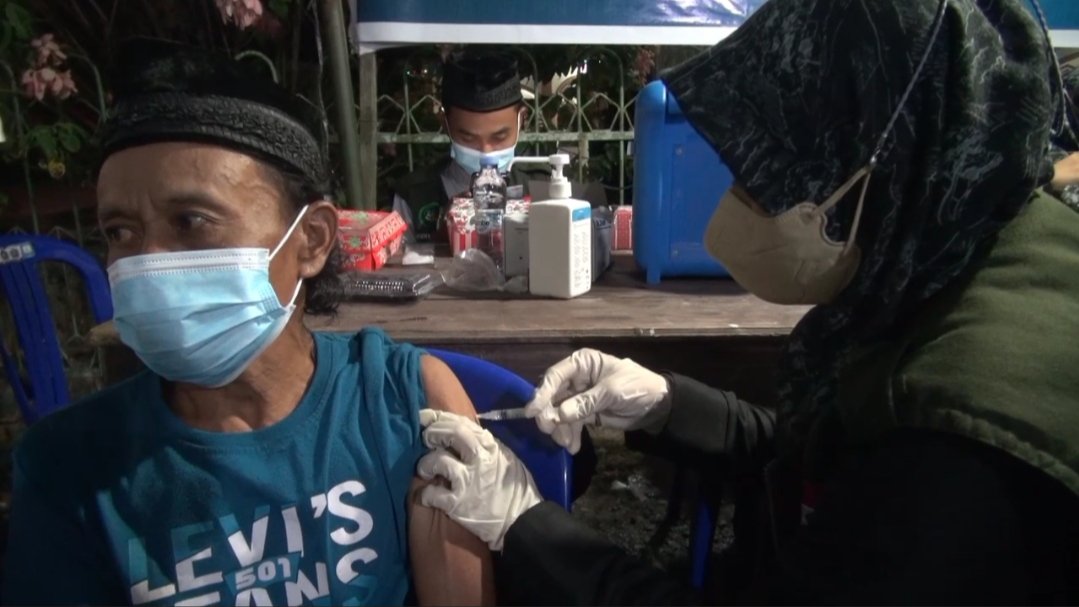 Petugas vaksinator dari Puskesmas menyuntikkan vaksin booster kepada masyarakat.