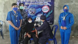 Danlanal Banjarmasin Kolonel Laut (P) Herbiyantoko MTr Hanla mengatakan, vaksinasi yang digelar ini untuk mendorong dan mensukseskan program pemerintah daerah maupun pusat.