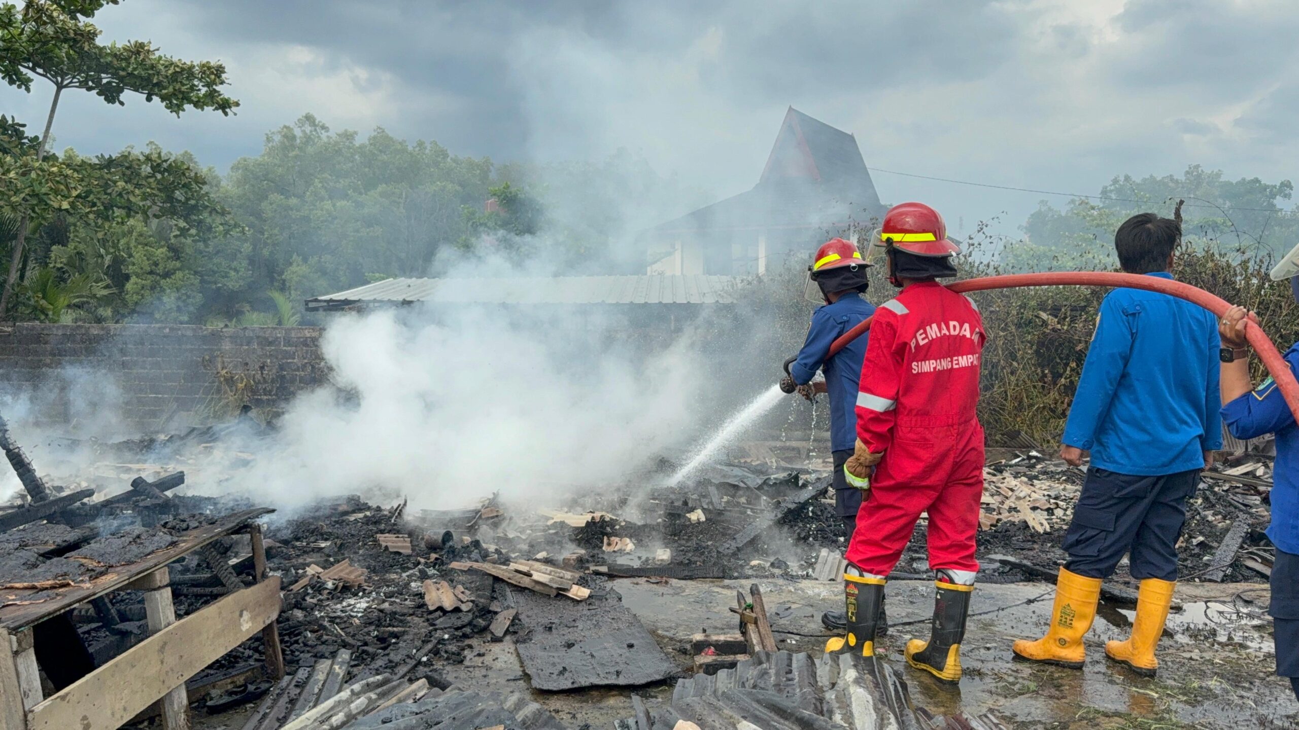 Sebanyak empat unit mobil pemadam kebakaran datang ke lokasi dan berhasil memadamkan si jago merah sampai mengeluarkan asap putih.