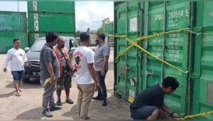 Satreskrim Polres Tanah Bumbu pasang garis polisi terhadap 6 kontainer berisi CPO di Pelabuhan Pelindo III Batulicin, Selasa (15/3/2022) kemarin.