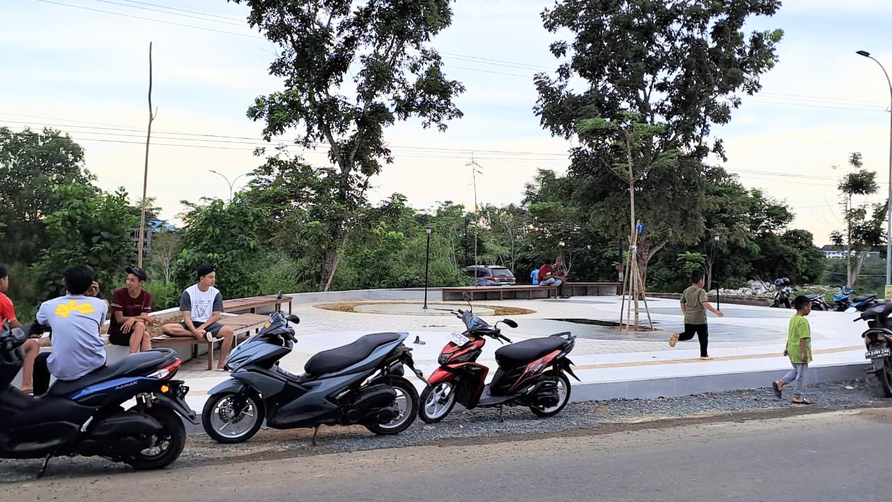 Di sisi lain jalan juga terdapat dua taman berlantai material paving blok beton dilengkapi bangku panjang yang biasa dijadikan tempat nongkrong bagi kaum milenial.
