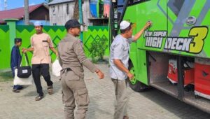 Tanah Bumbu – Kepulangan jemaah haji asal Tanah Bumbu, sukses dikawal Satpol PP dan Damkar setempat. Petugas Satpol PP dengan penuh tanggung jawab mengawal kepulangan 183 orang Jemaah Haji dari Asrama Haji Banjarbaru menuju Batulicin, Tanah Bumbu.