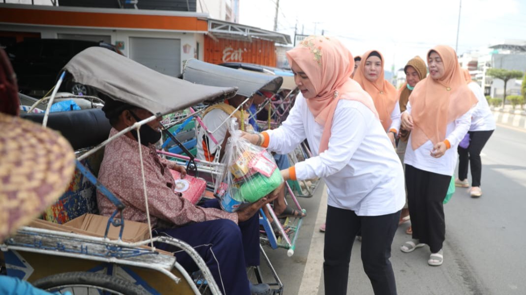 Aksi berbagi ini dipimpin langsung Ketua DWP Kabupaten Tanah Bumbu Hj Hasnah Mashude didampingi sejumlah pengurus.