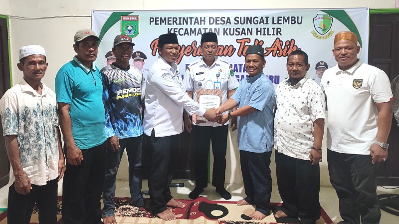 Penyerahan Tali asih tersebut diserahkan di kantor Desa Sungai Lembu Kecamatan Kusan Hilir, disaksikan Camat Kusan Hilir, Suparman, Rabu (27/12/2023).