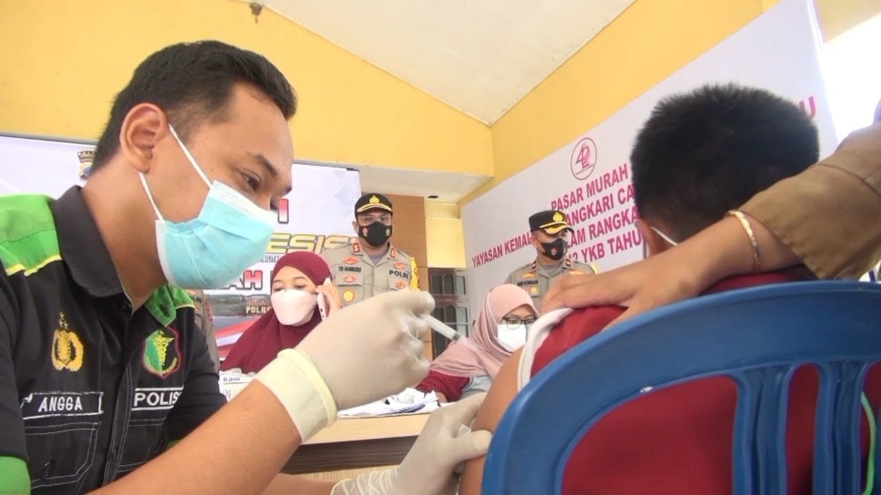 Suasana serbuan vaksinasi yang digelar kerjasama Pemkab, Polres dan Kodim di Tanah Bumbu.
