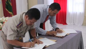 Kepala Kejaksaan Negeri Tanah Bumbu I Wayan Wiradarma dan Kepala Kantor BPN setempat, Agus Sugiono membubuhkan tandatangan.