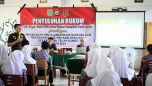 Tanah Bumbu – Bagian Hukum Sekretariat Daerah (Setda) Pemkab Tanah Bumbu bersama Kejaksaan Negeri (Kejari) setempat gelar penyuluhan hukum ke pelajar SMA Negeri 1 Kuranji, Kamis (30/5/2024).