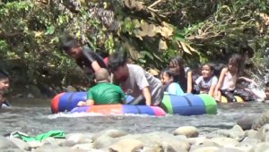 Terlihat puluhan anak-anak dan orang tua sangat gembira bermain disungai tersebut dengan ban (river tubing) untuk menyusuri aliran sungai.