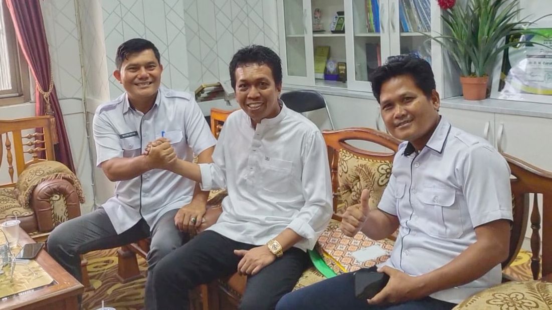 BERMITRA – Kepala Desa Dwi Marga Utama dan Kerta Buana, Sungai Loban, Tanah Bumbu sepakat bermitra dengan Ketua Rumah Inspirasi Kreatif, Anwar Ali Wahab (tengah), Rabu (26/4/2023).