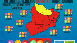 “Dari 22 kasus baru, 10 diantaranya warga kecamatan Simpang Empat. Sementara sisanya 8 orang asal Kusan Hilir, 3 di Batulicin dan satu domisili Karang Bintang,” ucap Ardiansyah, Humas Satgas Penanganan Covid-19 kabupaten Tanah Bumbu, Minggu (10/1/2021) sore di Batulicin, mengutip data Dinkes. Ia menyebutkan semua terkonfirmasi positif dikarantina secara mandiri.