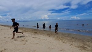 “Jauh dibandingkan hari biasa jumlah pengunjungnya,” ungkap petugas karcis masuk Pantai Sungai Loban Indah, Ahmad Yani, Minggu (30/4/2023).