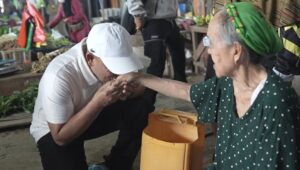 Selepas laris dagangannya, nenek Suriah ucapkan syukur. Didepan H Bahsanudin, Bakal Calon Wakil Bupati Tanah Bumbu itu, wajahnya tampak haru. Bahsanudin lantas mencium tangan nenek Suriah.