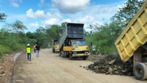 Tanah Bumbu, lenterabanua.com – Pemerintah Kabupaten Tanah Bumbu terus melakukan langkah-langkah strategis dan rencana upaya penanganan jalan longsor Jalan Nasional di Jalan Provinsi KM 171 Desa Satui Barat, Kecamatan Satui, Kabupaten Tanah Bumbu.