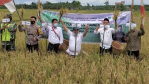 Bupati menyambut baik dan turut bergembira, dengan diselenggarakannya syukuran panen padi ini.