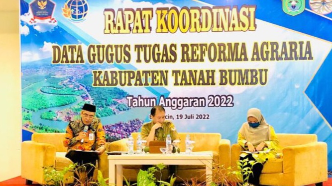 KANTOR Pertanahan Kabupaten Tanah Bumbu gelar Rapat Koordinasi Data Gugus Tugas Reforma Agraria Kabupaten Tanah Bumbu Tahun Anggaran 2022, di Hotel Ebony Batulicin, Selasa (19/7/2022).