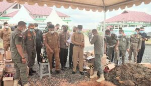 Tanah Bumbu, lenterabanua.com – Hasil sitaan Dinas Polisi Pamong Praja dan Damkar Kabupaten Tanah Bumbu berupa 1.529 botol minuman keras beralkohol berbagai merk dimusnahkan, Selasa (19/4/2022).