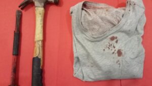 Bersama tersangka, polisi mengamankan barbuk berupa 1 palu besi merk YPap, 1 betel besi dan selembar penuh bercak darah korban.