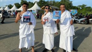 “Sebelumnya panitia hanya menyediakan 150 paket umroh, namun pemilik PT Jhonlin Group H Isam melihat ada tiga peserta menggunakan pakaian ihrom saat jalan sehat, maka H Isam secara spontan menunjuk tiga peserta tersebut untuk berangkat umroh tanpa melalui kupon undian,” kata CEO Jhonlin Group Ghimoyo sekaligus penasehat kegiatan Batfest 2023 di Batulicin, Minggu (31/12/2023) sore.