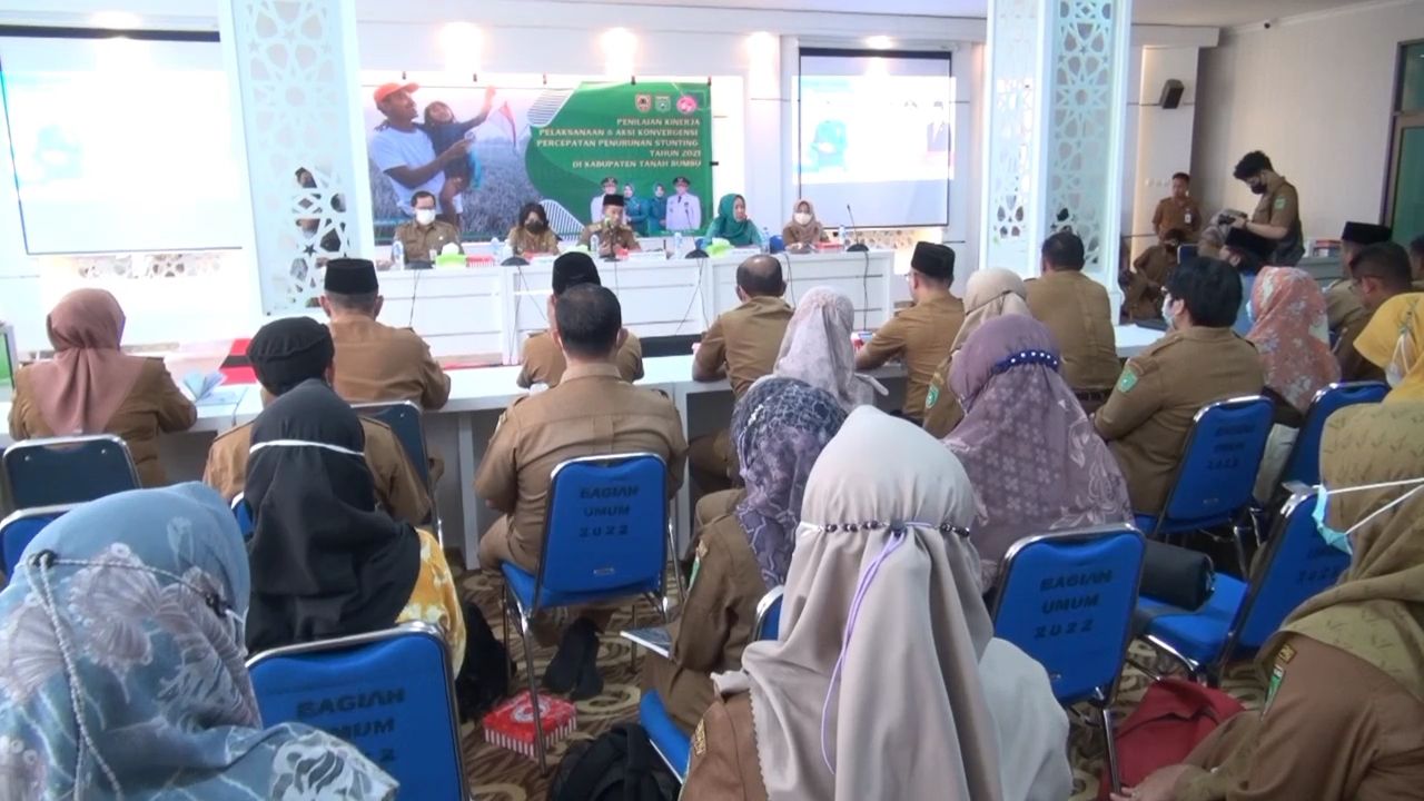 KABUPATEN Tanah Bumbu mendapatkan kunjungan dari Tim Penilai Kinerja Konvergensi Percepatan Penurunan Stunting 2021 Provinsi Kalsel, Senin (20/06/2022) di ruang rapat Bersujud, Kantor Bupati.