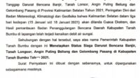 BATULICIN, lenterabanua.com – Menyusul naiknya status Provinsi Kalimantan Selatan dari Siaga Darurat Bencana menjadi Tanggap Darurat Bencana, sesuai surat Gubernur Sahbirin Noor