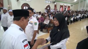Kegiatan halal bihalal juga dirangkai dengan penyerahan piagam penghargaan dan bantuan perlengkapan pendidikan kepada para pendidik.